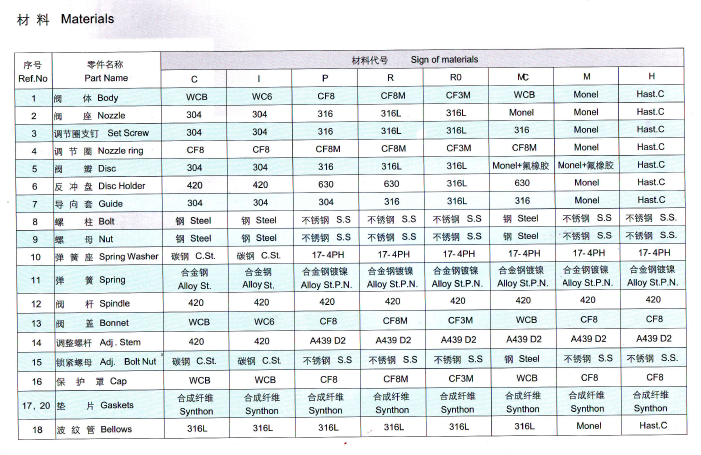 ★反沖盤和導向套、閥桿和調整螺桿的材料選用合理、零件相關間隙配合適當,保證閥瓣運動靈活。